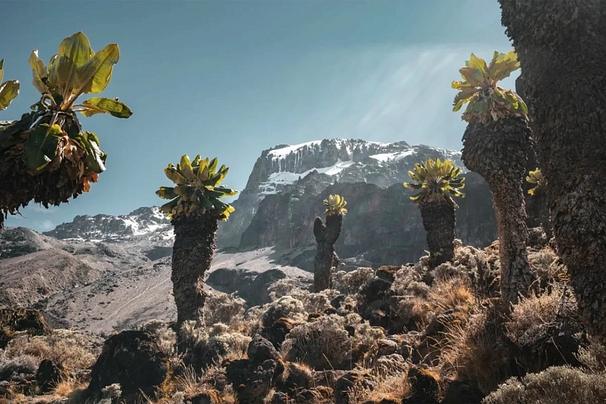 We leave the rainforest and enter the heather and moorland zone, hiking among tall grasses, heather, and lichens. The trail ascends to the Shira Plateau, offering the first views of Kibo Peak — Kilimanjaro’s main and highest crater, where Uhuru Summit (5,895 m) is located.