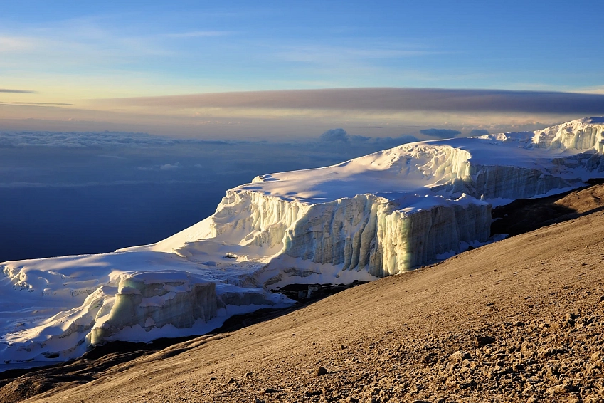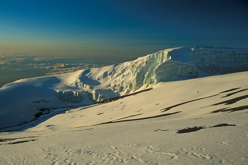 We set out at night. In complete darkness and silence, we climb the loose volcanic slope under a starry sky, between the Rebmann and Ratzel glaciers. Sunrise greets us at Stella Point on the crater rim, and an hour later we reach the long-awaited Uhuru Peak (5,895 m), the highest point in Africa. After photos and a short rest, we begin the long descent. The day ends at Mweka Camp, surrounded by greenery and warmth.
